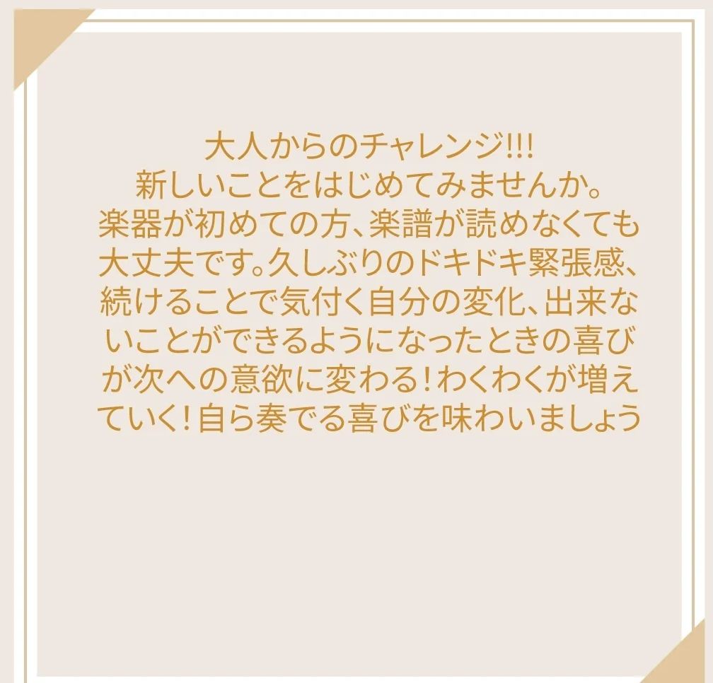 マリンバ&ストレッチルームは「いつもと違う時間、空間を過ごしませんか」をコンセプトにお子さまからシニアの方まで楽しめるプライベートレッスンスタジオです。音楽レッスンではマリンバ、サクソフォーンのプライベートレッスンを行っています。現在小学生から70代の方まで幅広く音楽を楽しみにこられています。年に一度「弾き合い会」と題してアットホームな雰囲気で発表会を行っています。
