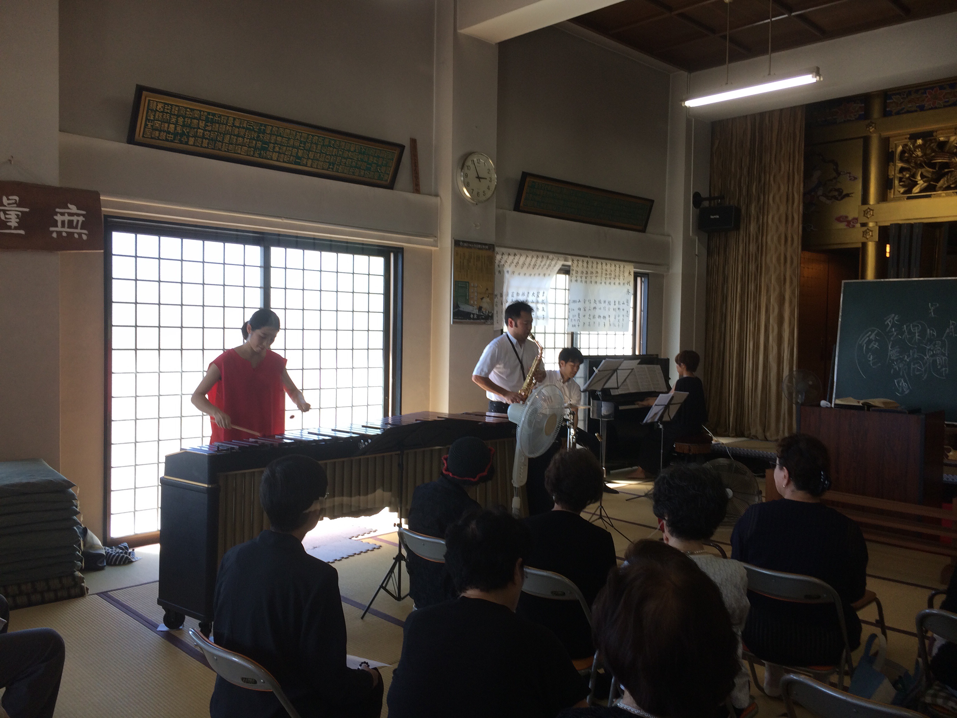 お寺でのミニコンサート 投稿日: 2017年8月5日 投稿者: shokomarimba 門司にあるお寺、徳念寺でのお盆法要ミニコンサート♪昨年に引き続きお声がけ頂き演奏させて頂きました。仏教聖歌の演奏もこういう機会でしかしないことなので、心がすーっと浄化される感じでした♪仏教歌も賛美歌のように、たくさんの曲があるそうです。どの曲もハーモニーがきれいで、演奏していても心地よいです。 今回はピアノ、マリンバ、サックス、パーカッションの4人での演奏。気心知れた仲間と演奏できるのは本当に嬉しいしありがたいです。 共有: X で共有 (新しいウィンドウで開きます) X Facebook で共有 (新しいウィンドウで開きます) Facebook いいね 読み込み中…