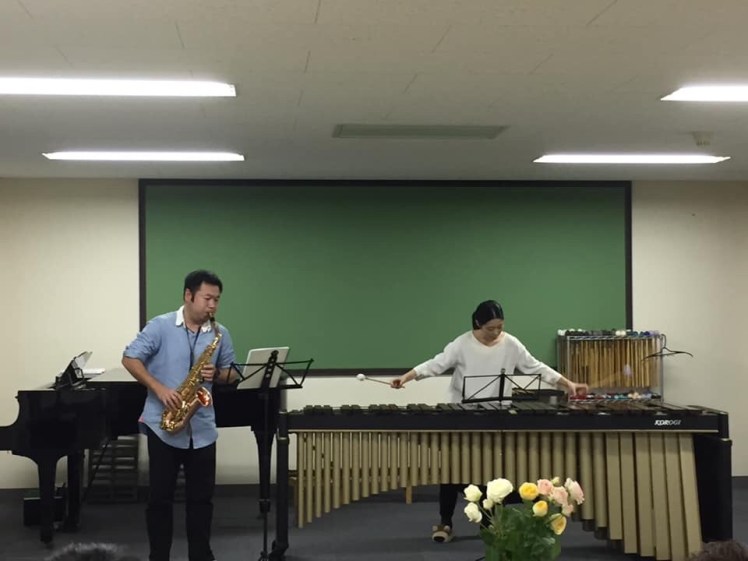 今年度の弾き合い会を教室で行いました。子供から大人の方まで(マリンバ、ピアノ、サックス)今まで練習してきた曲や好きな曲を披露しあいました。発表会みたいに緊張感ある雰囲気ではなく(生徒さんたちはドキドキしていましたが)日頃聞けないご家族の方や見学の方もいらっしゃっていて、飲み物やお菓子を頂きながらあたたかい雰囲気で行いました。今回はレッスンされている方全員の参加ではなかったので次回はもっといろいろな方の演奏が聴き合える会になるようにしたいなと思います。ご参加くださった方、ご家族お友達の方々、見学に来てくださった方々どうもありがとうございました。生徒さんたちの演奏後にマリンバとサックスでミニミニコンサートさせて頂きました。私たちもおさらい会の気持ちで新曲をドキドキしながら演奏しました。