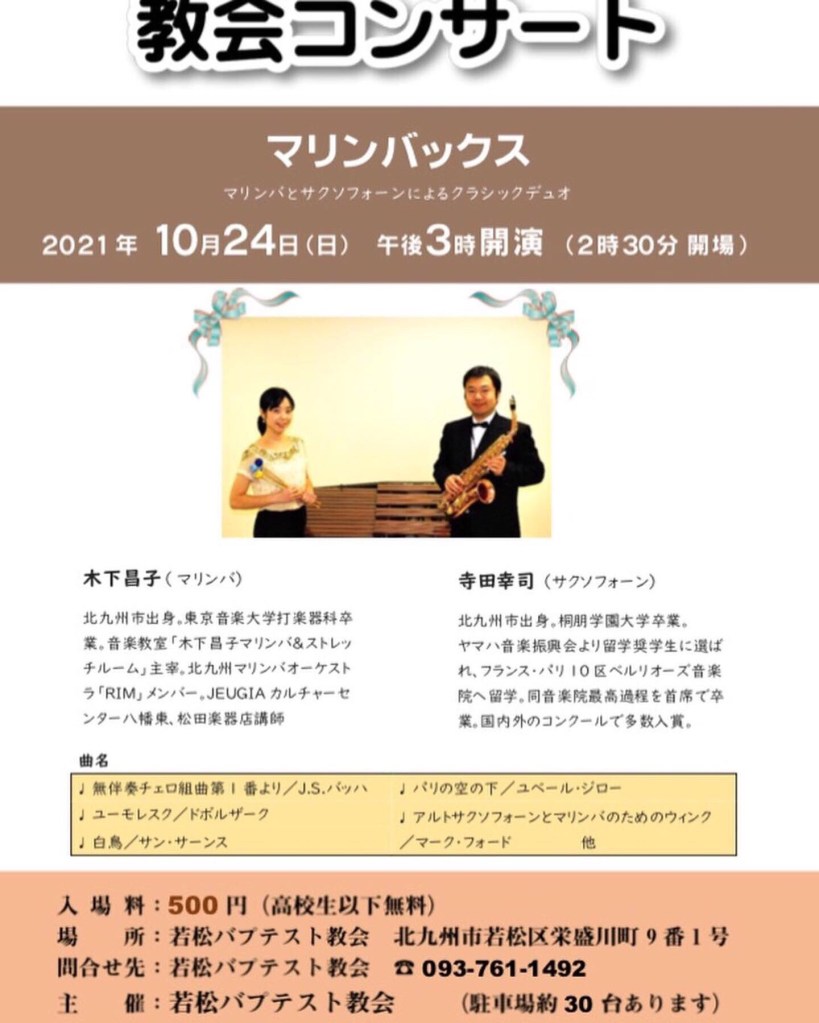 とっても素敵な空間でのコンサートがございます。若松バプテスト教会にて開催されます教会コンサートでの演奏です♫
